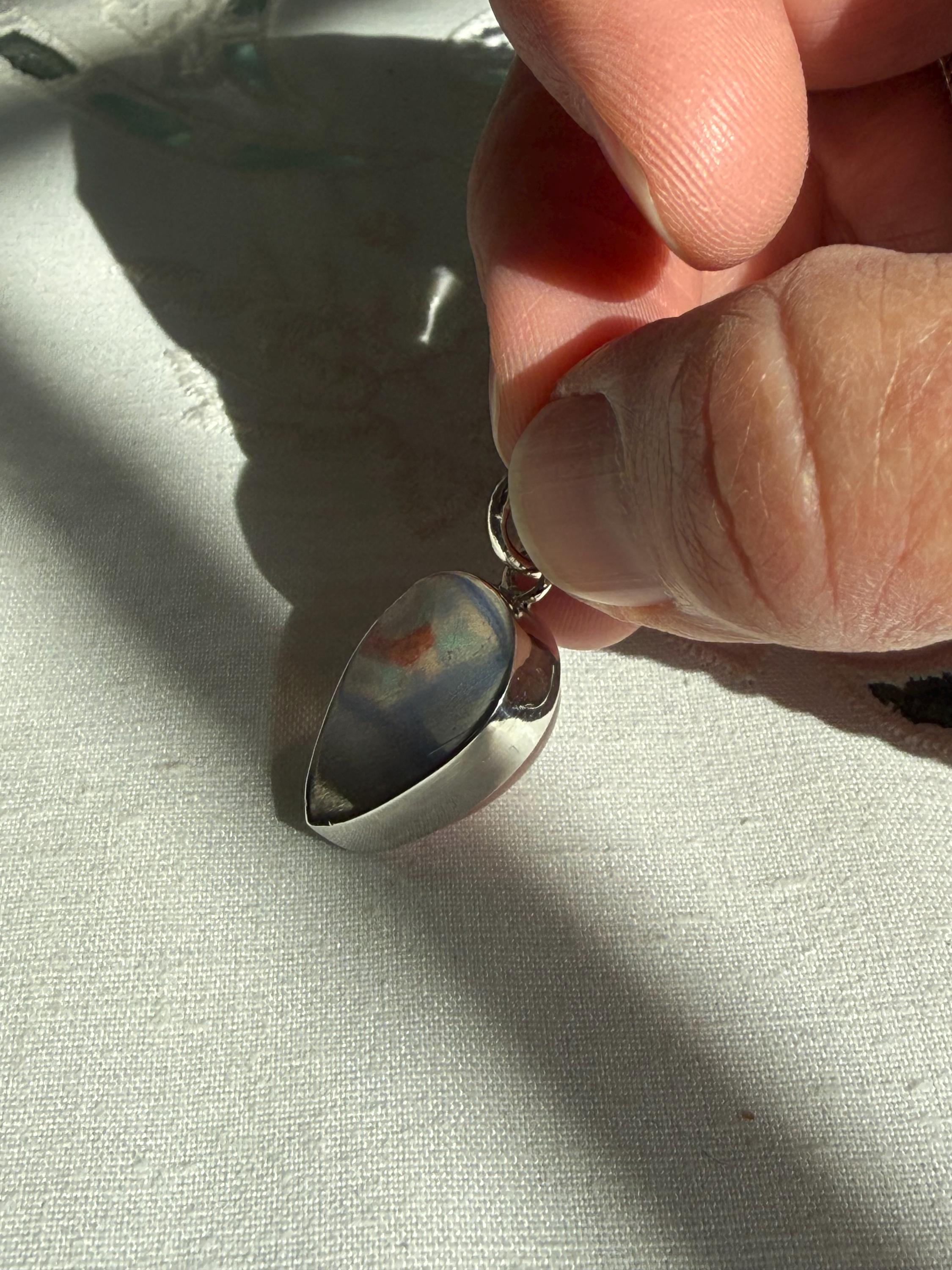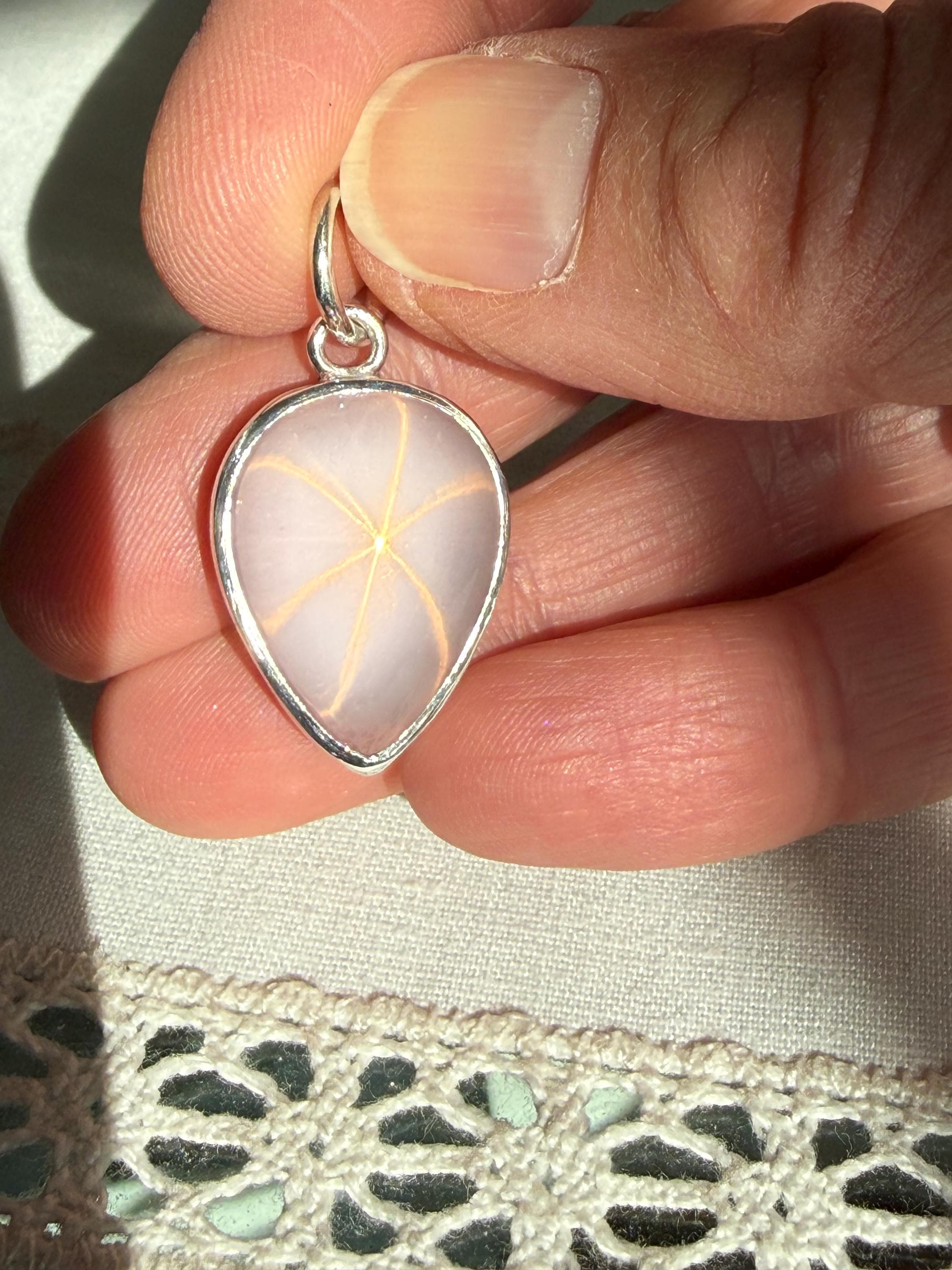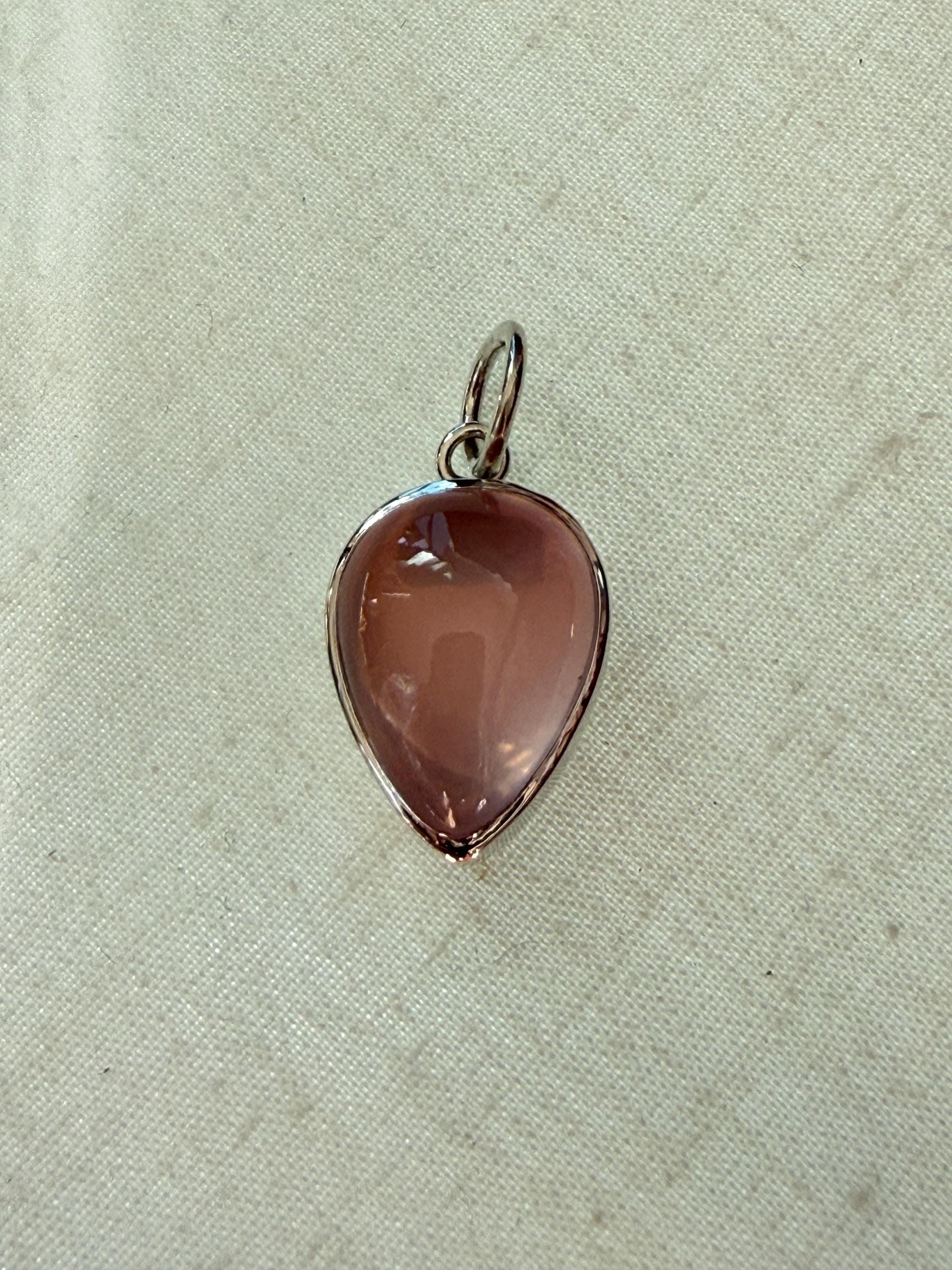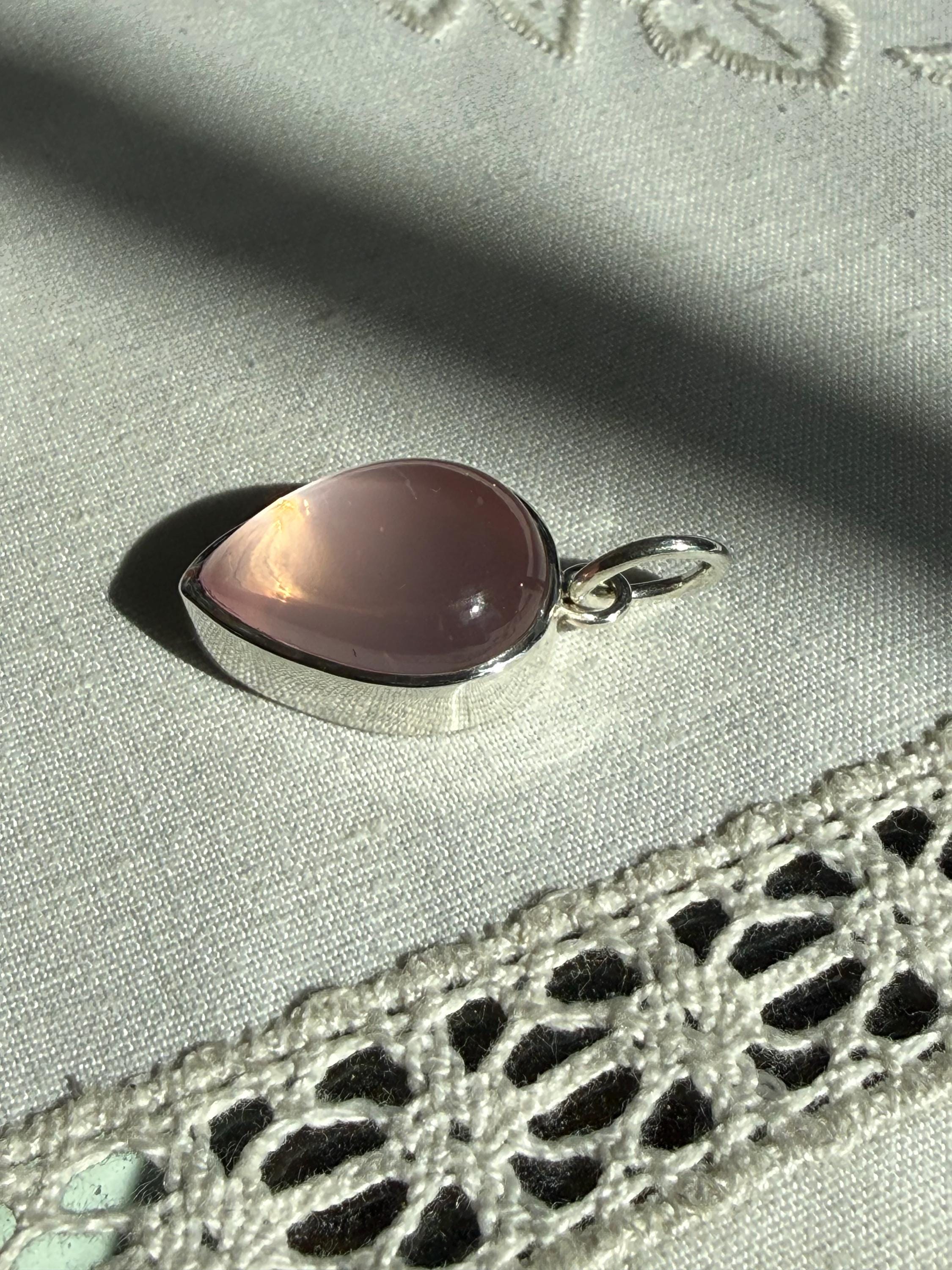 Ethereal beauty with a soft petal pink color combine to make this inverted tear drop rose quartz pendant seem to glow from within! Set point down, in a hand fabricated bezel mounting of fine silver, with a pendant bail of sterling silver, it measures about 31mm from top of the bail to the bottom of the pendant, and about 16.2mm across. The stone is cubby, at 17 cts and has a soft teardrop shape with a very high domed profile. The natural inclusions of the stone give it a glowing quality, when in direct sunlight create a 6 star ray (see the video!) This piece of rose quartz makes a beautiful statement pendant. This listing is for the pendant only and does not include a chain; if you would like to add it to a Funky Link, I have several listed that would work, or I can custom make one in a length of your choice (again, the chain is a separate purchase). The last 4 photos show this pendant with other pieces sold separately.